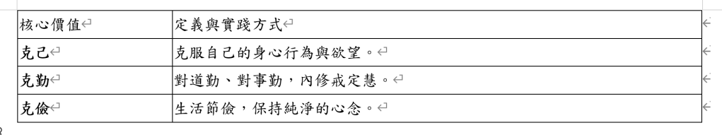 靜思弟子必須在生活中實踐以下核心價值: