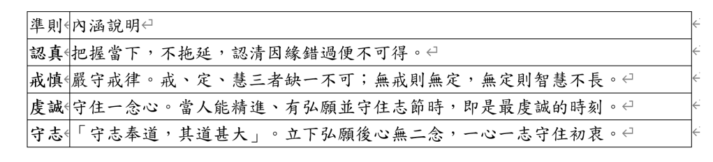 - 發願即是回向: 懺悔之後必須緊接著發願,將過去的錯誤觀念改正,並將習氣導向正確位置。
